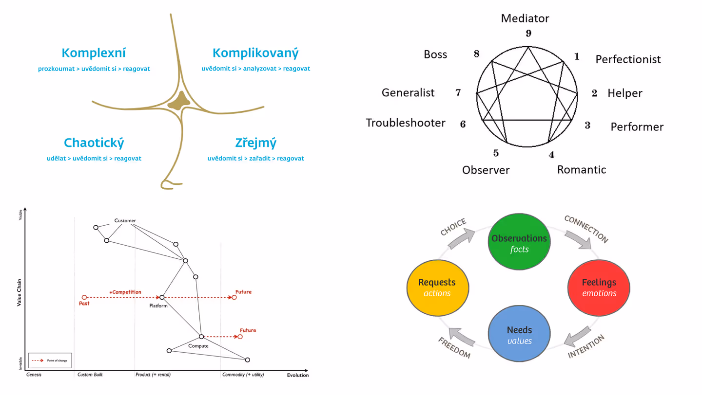 NVC mě obohatila nejen jako šéfa a jednatele, ale i jako výzkumníka — bez porozumění emocím a potřebám lidí se velmi těžko dostanete ke skutečnému jádru věci. Stejně jako v případě enneagramu je NVC potřeba zažít, takže tady nebudu rozepisovat konkrétní principy či metody. NVC je sada dovedností a návyků — na začátku může mimochodem znít dost nepřirozeně. To se zlepší až časem.