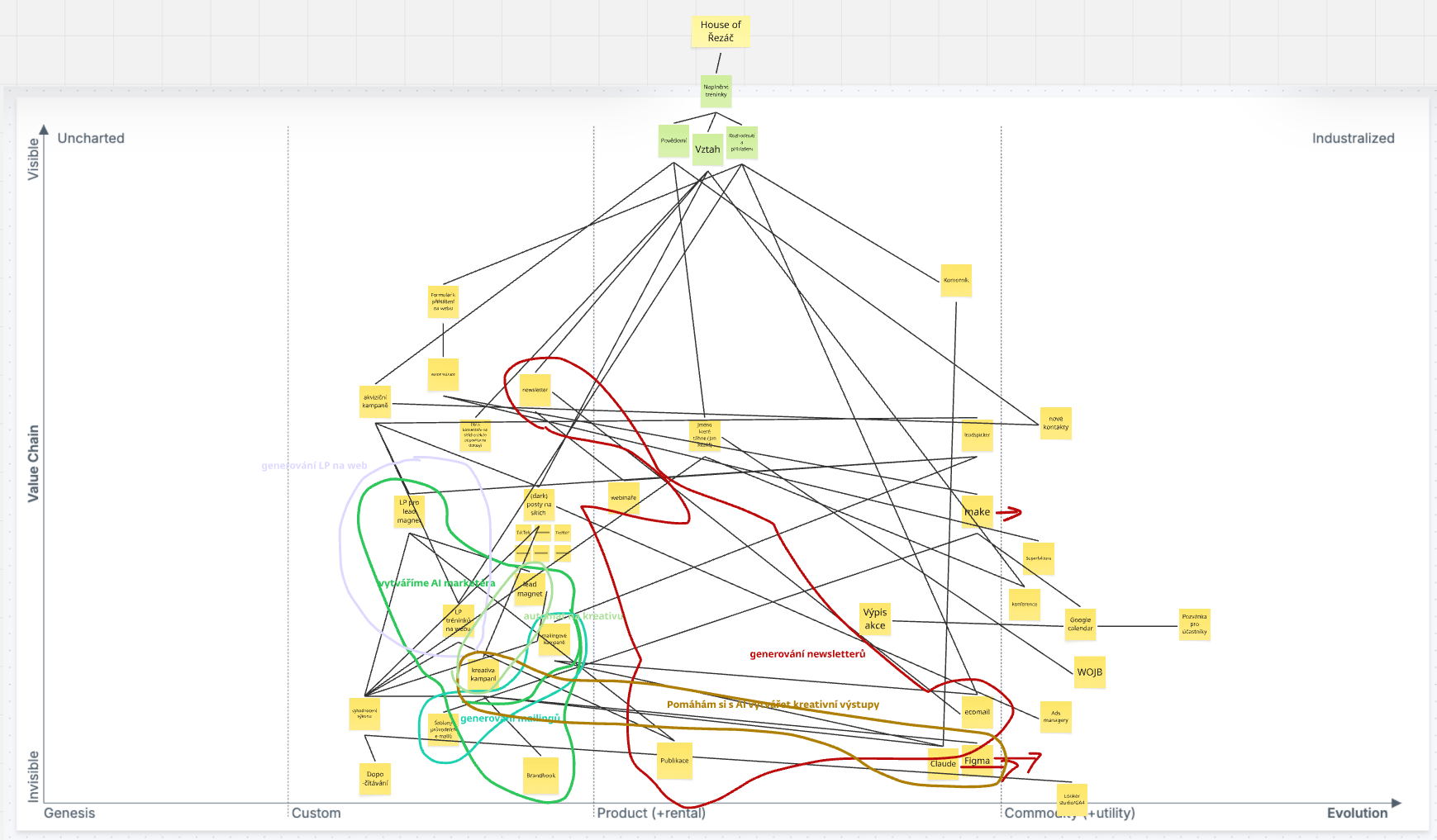Zorientujte se. S Wardleyho mapou se podíváte na celý svůj byznys najednou. Ne v hlavě. Ne v prezentaci. Na jednom obrázku, nad kterým můžete diskutovat.