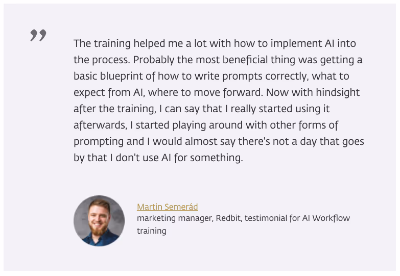 You introduce AI into the organization. Generative AI is like Excel. Everybody knows him. Few make the most of it. You'll get new ideas, answers to your questions, and a community that meets every month. You will not be alone in this.