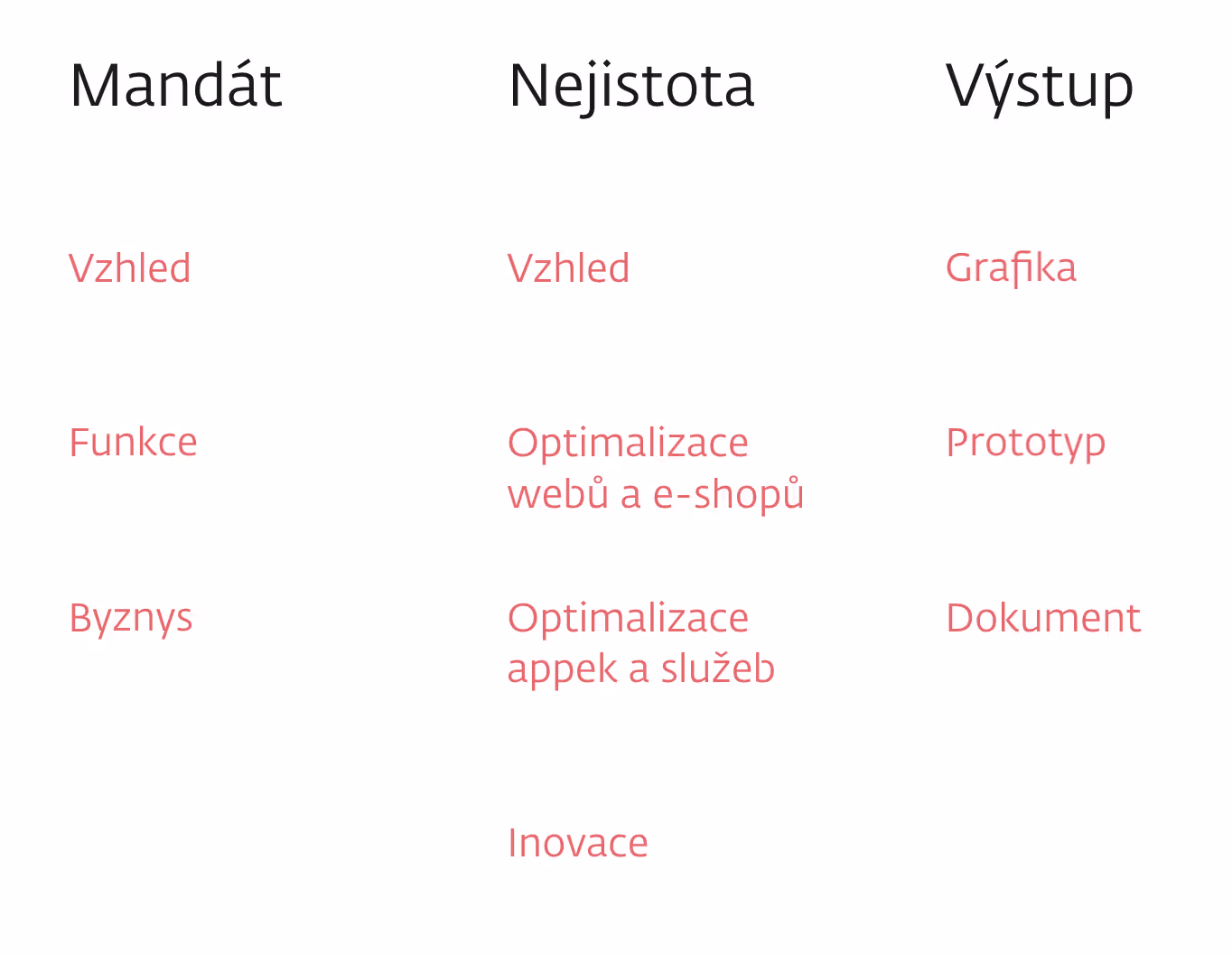 - Website/e-shop optimization (CRO) — conversion rate optimization, low uncertainty and potentially high benefit.