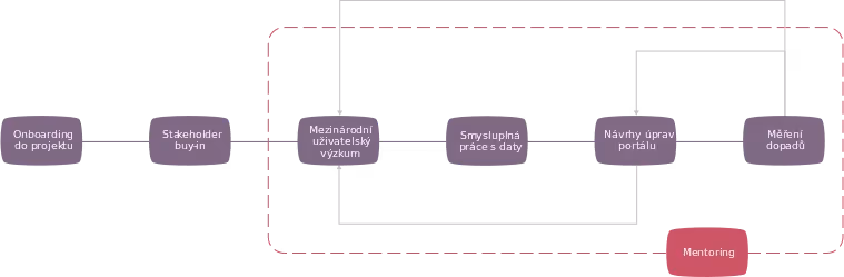 Součástí projektu nebyla jen práce na portálu, ale i zlepšování designerských kompetencí interního týmu. Na začátku projektu jsme připravili sérii školení na designový proces, uživatelský výzkum a analytiku a navázali jsme na ně mentoringem v průběhu celého projektu.